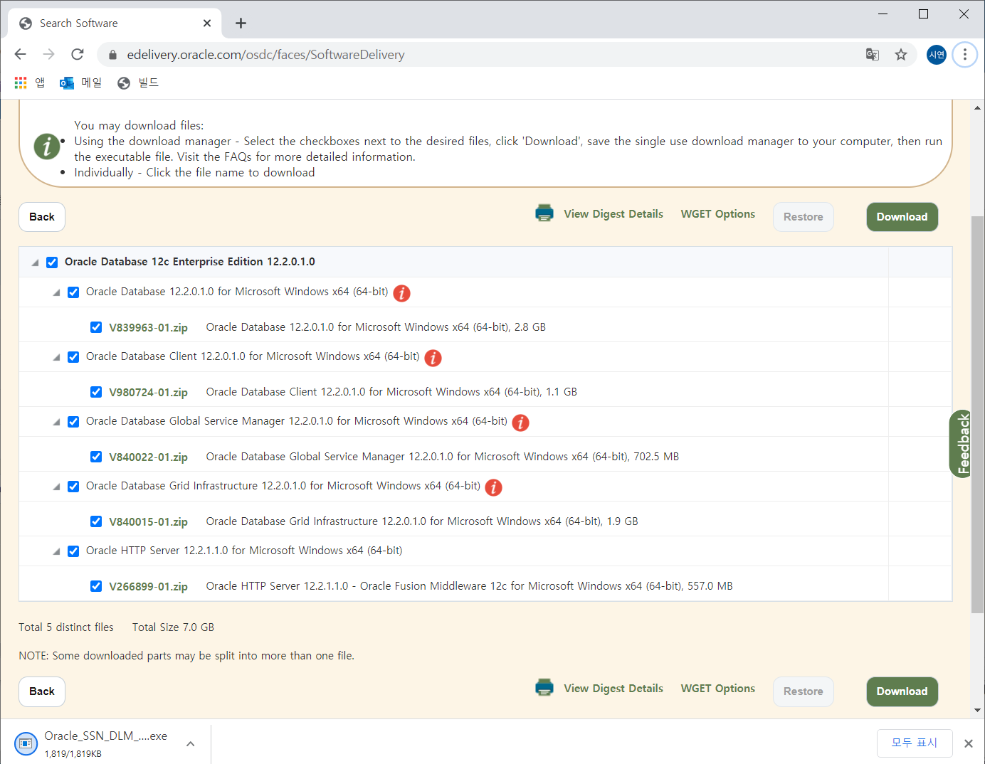 캡쳐에는 전체 선택 되어있는데 필요한 것만 선택하고 다운하면 된다.