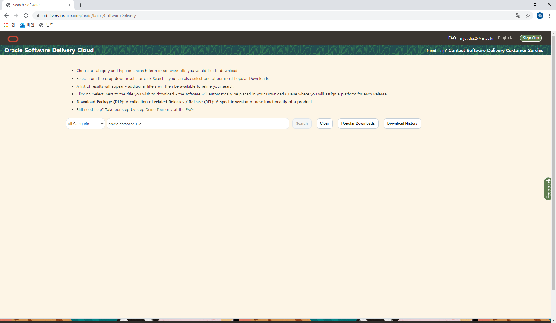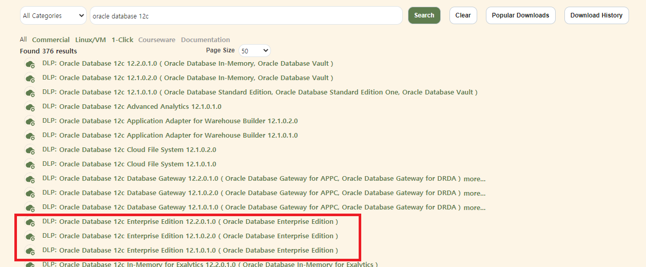 oracle database 12c를 다운받고 싶다