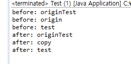 - copyTest에 String과 String[]을 파라미터로 보낸 뒤, 값 변경