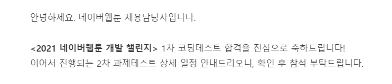 코테 보고 3~4일 후에 1차 합격 통보가 바로 도착했다~!