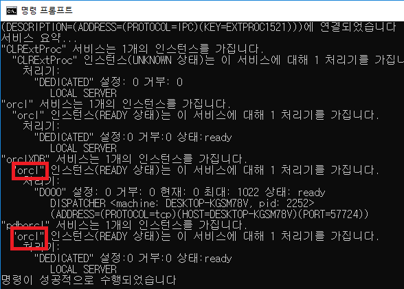 나는 대부분을 표준 값 그대로 설정했기 때문에 orcl로 떴다.