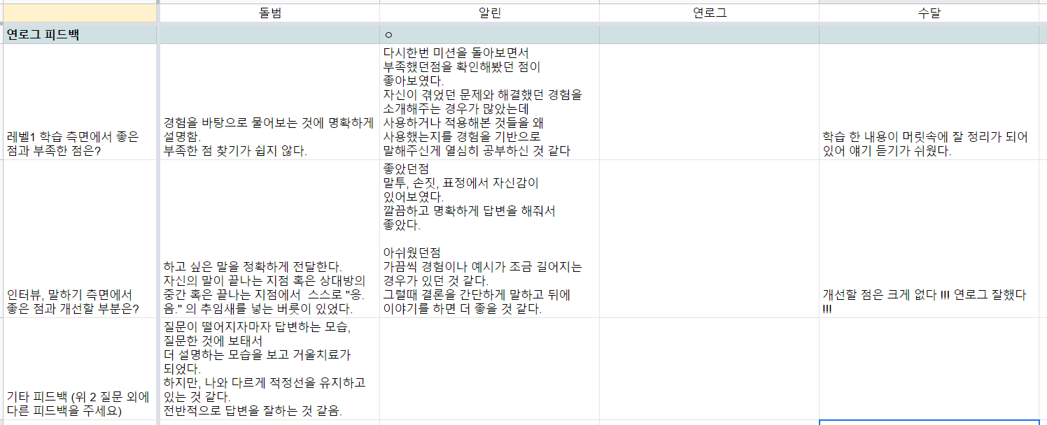 - 인터뷰를 마치면 서로에게 피드백을 해준다.