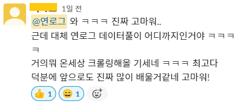 몹 프로그래밍의 단점이라고 생각될 수도 있는데 실질적으로 내가 키보드를 붙잡고 타자치는 시간은 짧다. 초반이라 개발보다 팀 회의할 일이 많았고 그나마 진행되는 개발도 몹으로 하다보니 진행이 느렸다. 물론 좋은 방향으로 나아간다는 생각은 들었지만 '개발하고 싶다'는 욕구가 모두 충족된다는 생각이 들지는 않았다. 누군가 현직자에게 '회사 다니는 것도 바빠죽겠는데 어떻게 토이 프로젝트까지 하시나요?'라고 질문을 했는데 '회사는 회의 하느라 바빠서요. 내가 하고 싶은 개발과는 다르더라고요. 하고 싶은 일을 하고 싶었어요' 라고 답변한 사람이 있었다. 이번 스프린트의 내가 이런 상황이었던걸까? 이제 팀에 적응도 거의 다 했겠다 다음 스프린트부터는 페어로 진행할 것 같긴 하다. 이제는 개발 욕구가 어느 정도 충족되지 않을까 라는 기대감을 가져본다.