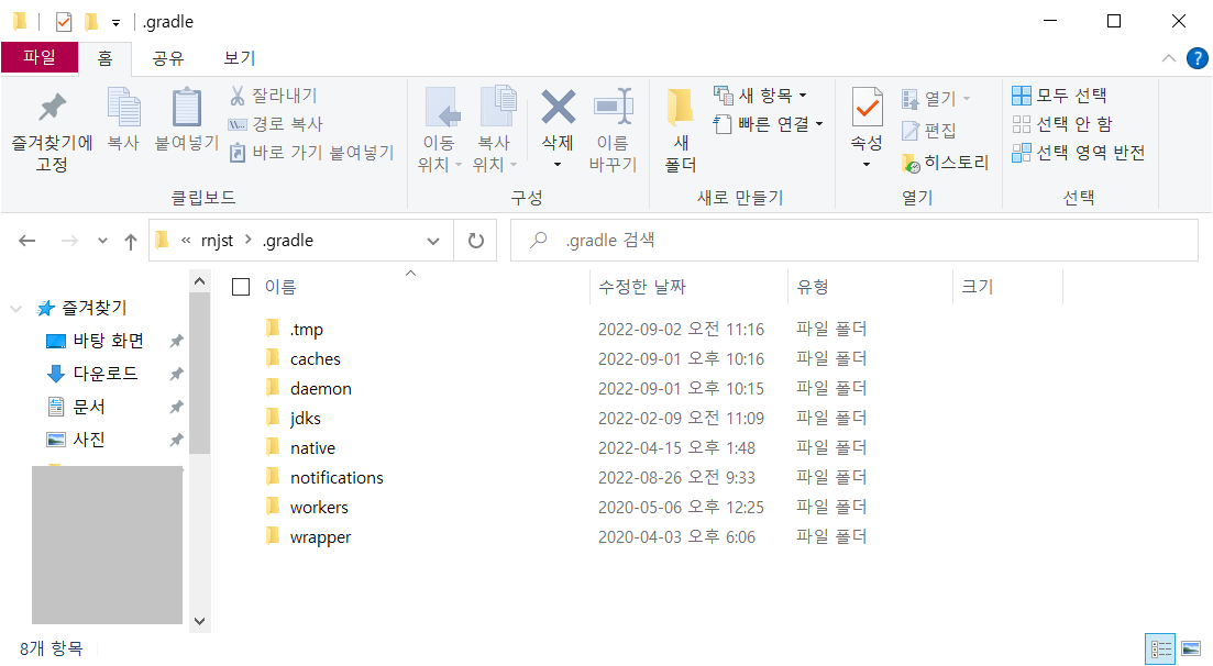 이 위치는 별도로 지정하지 않았다면 C:\Users\사용자명\.gradle 위치에 존재한다.