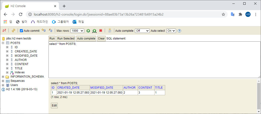 | [Spring] 등록 API 만들기 (+h2 웹 콘솔 이용하기) (0) | 2021.01.15 |