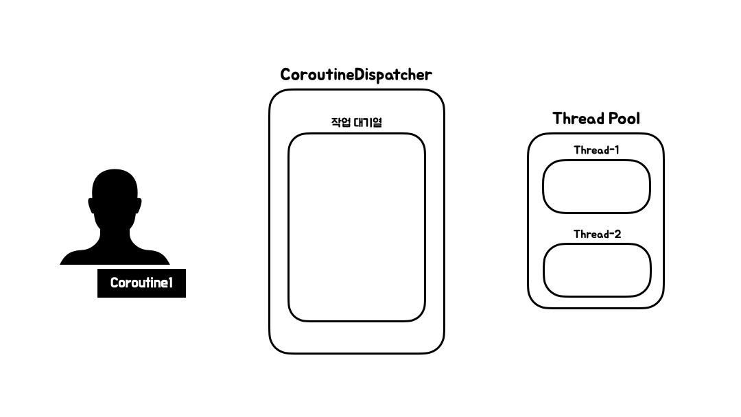 - CoroutineDispatcher 객체에 코루틴의 실행이 요청된다.