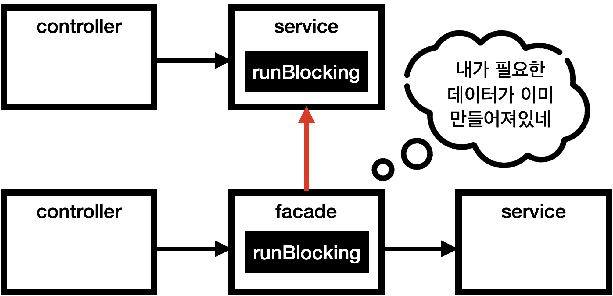 - runBlocking을 쓴 클래스가 가장 바깥(controller) 외에서도 사용될 수 있다