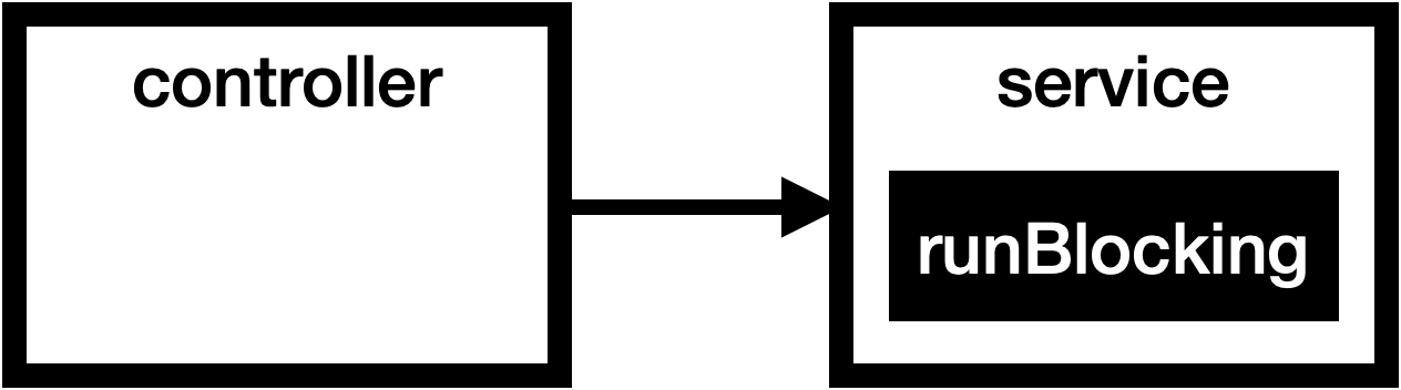 runBlocking이 중첩되는 상황은 설계 단계에서 예상하지 못한, 비의도적인 상황이다. 최초에 controller에서만 호출되던, runBlocking을 적용된 클래스가 있었다.