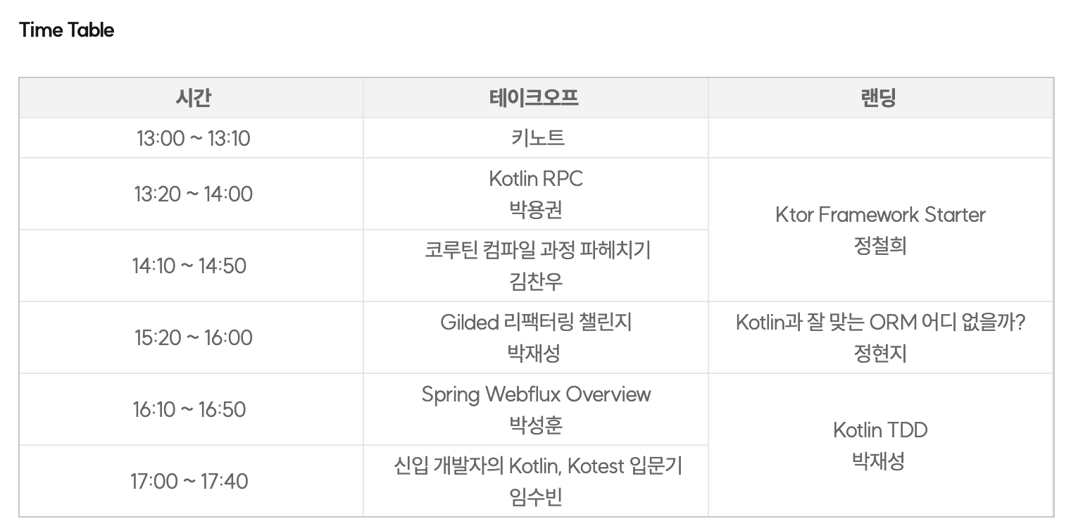 정말 오랜만에 컨퍼런스를 참여한 것 같은데 오래간만에 가니 다시 열정이 생기는 것 같아서 좋았다. 작년에 코루틴 공부를 열심히 했던 기억은 있는데 정작 코틀린은 따로 공부한 기억이 없는 것 같다. 자바랑 비슷하다 보니 큰 고민 없이도 그냥 쓸 수는 있었는데... 더 잘 쓰려면 코틀린에 대해서도 공부해야겠다 하는 생각이 든다.