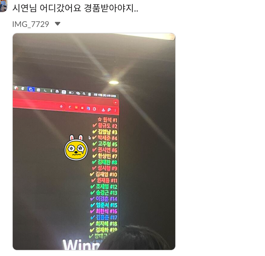 마지막 발표는 흥미 외의 주제라 컨퍼런스에서 조금 일찍 나왔다. 회사 슬랙이 울려 확인해 보니... 내가 경품에 당첨되었다고 한다ㅠㅠㅠㅠ 핀볼은 맨날 업무 담당자 정할 때만 당첨되고 이런 당첨은 처음인데.. 하필 내가 자리에 없을 때 나오다니 아쉽다ㅠㅠ 다행인지 불행인지 컨퍼런스 참여하셨던 팀원분도 경품 당첨되셨다. 인형 받았다고 하셔서 회사에서 한 번만 만지게 해달라고 했다...