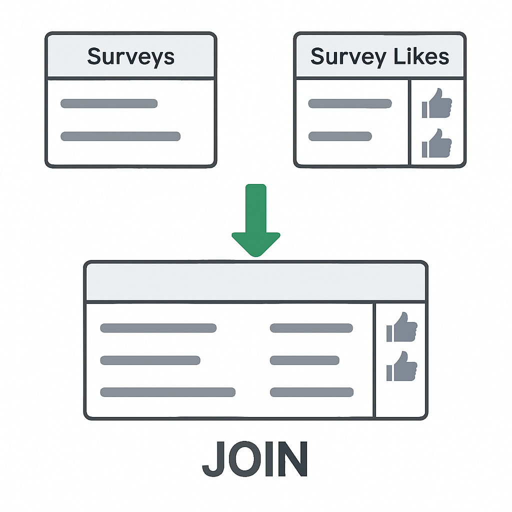 - 설문조사와 설문조사를 좋아요 하는 집계 수를 join 해서 조회하는 쿼리가 있다고 가정. 이를 어떻게 개선하면 좋을까?