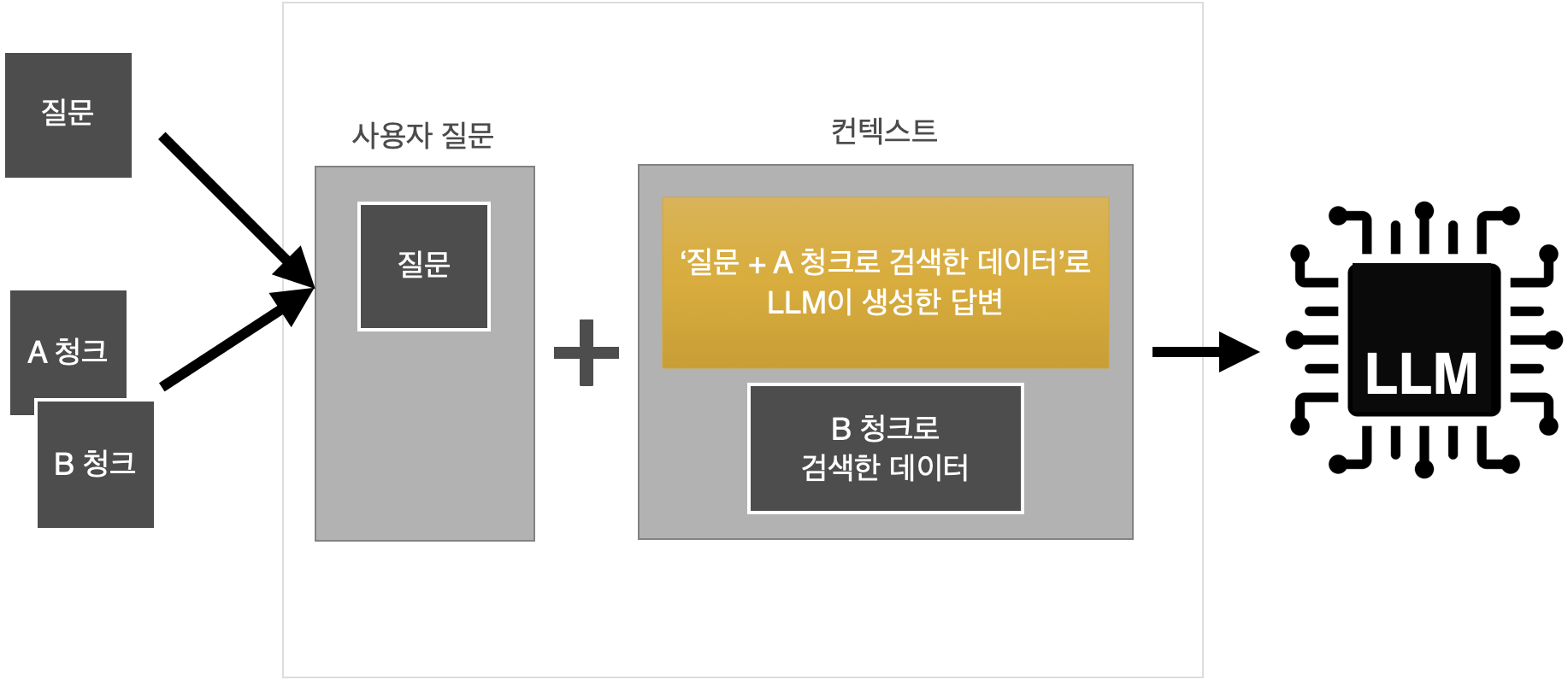 - 검색된 결과는 사용자 질문과 함께 엮어 LLM에게 넘김