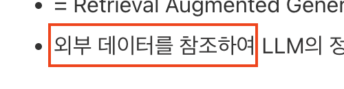 - 외부 데이터를 참조하여 LLM의 정확도와 신뢰성 향상에 도움을 주는 기술
