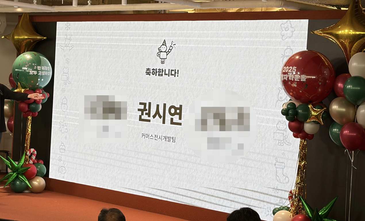 개발자 전체 타운홀에서 상을 받았다. 나는 서버개발그룹 운영진에서 2023년 12월부터 활동을 해왔다. 서버개발그룹 운영진은 사내 개발자 기술 공유나 네트워크 형성에 기여하기 위한 모임으로, 사내 여러 가지 기술 관련 컨퍼런스나 밋업을 주관한다. 2025년에는 운영진 리딩을 맡게 되어서 조금 더 신경을 많이 썼는데 그 덕에 받게 된 것 같다. 예상 못한 상에 얼떨떨했는데 감사하고 기쁘다.