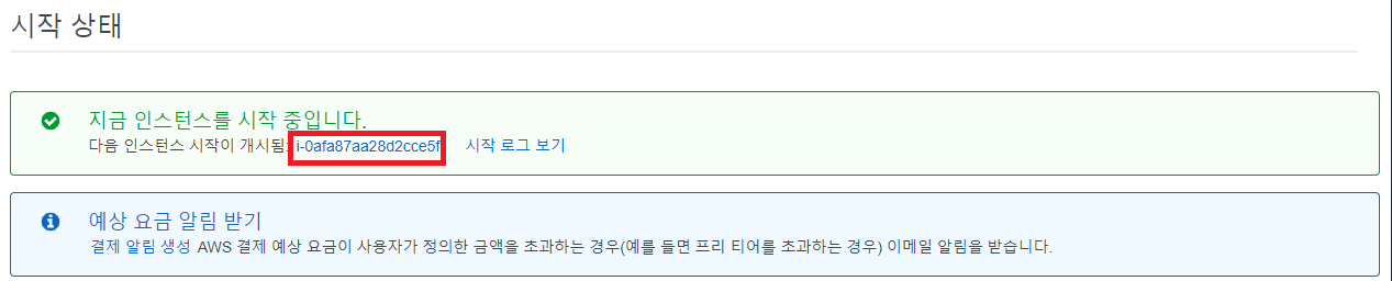 인스턴스 시작 버튼을 클릭하면 다음과 같은 화면이 뜬다.