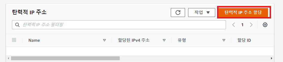 좌측 메뉴에서 탄력적 IP를 클릭한다.
