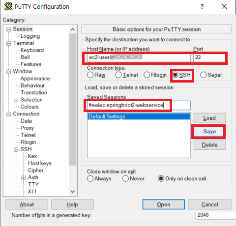| Saved Sessions | (자유) | 현재 설정들을 저장할 이름 |