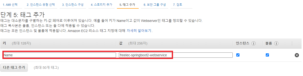 웹 콘솔에서 표기될 태그인 Name 태그를 등록했다.
