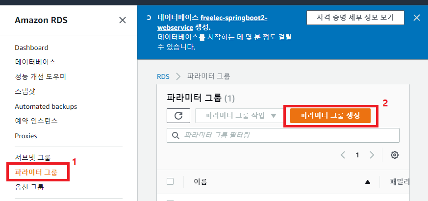 이제 생성된 파라미터 그룹을 db와 연결해야 한다.
