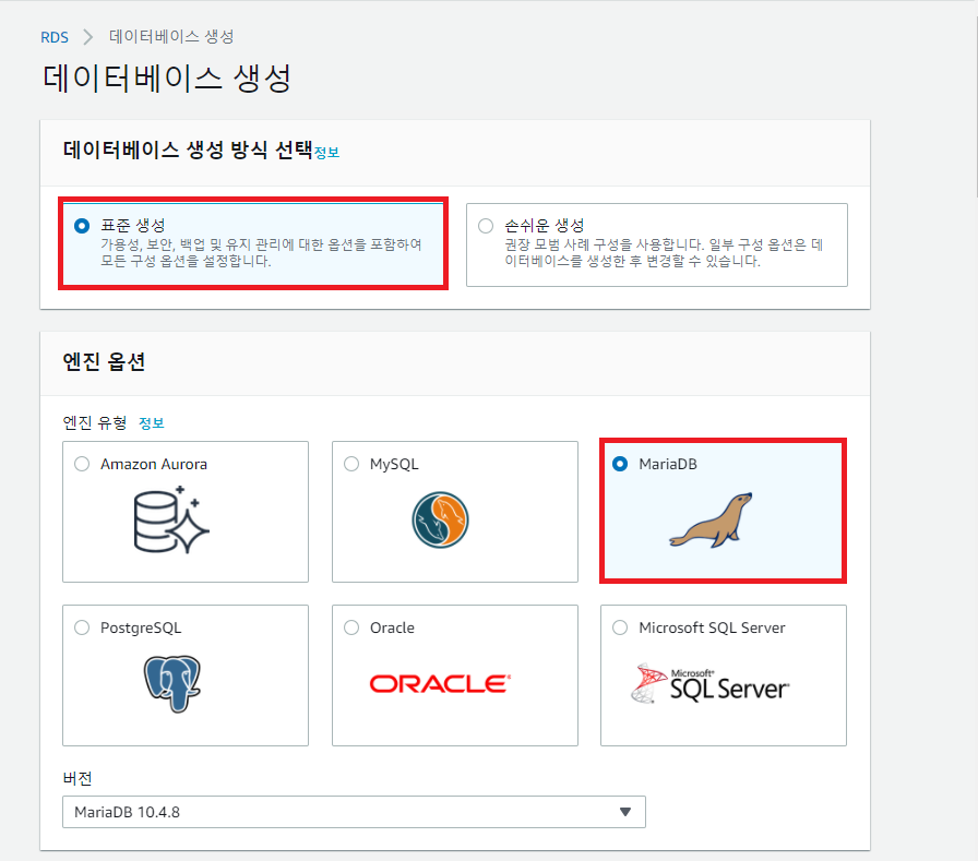 여기서 선택하지 않는 이유는 프리티어 대상이 아니고 최소 비용이 월 10만원이라 MariaDB를 택했다.