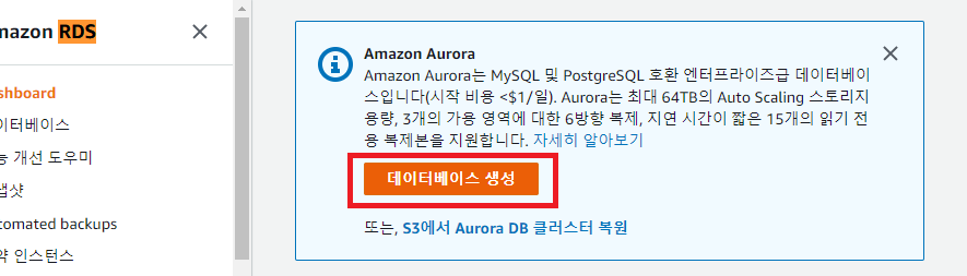 구글 콘솔( aws.amazon.com/ko/ )에서 RDS를 들어가자.