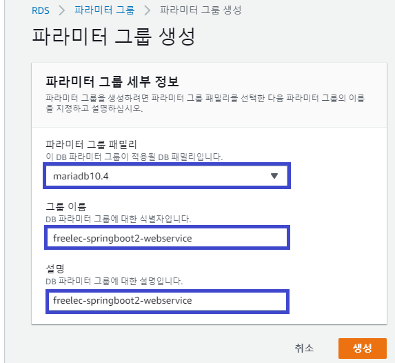 이제 RDS 운영환경에 맞는 파라미터 설정을 하자.