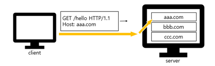 - client가 Host 헤더를 포함시켜 server에 전송한다.