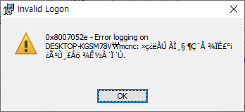 5-2. 0x8007052e - Error logging on ~~~ 에러