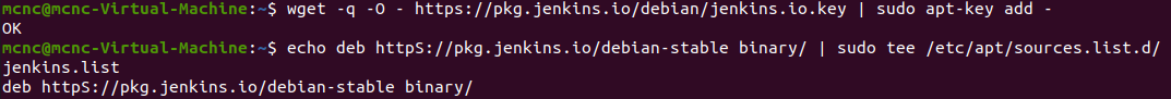 $ echo deb https://pkg.jenkins.io/debian-stable binary/ | sudo tee /etc/apt/sources.list.d/jenkins.list