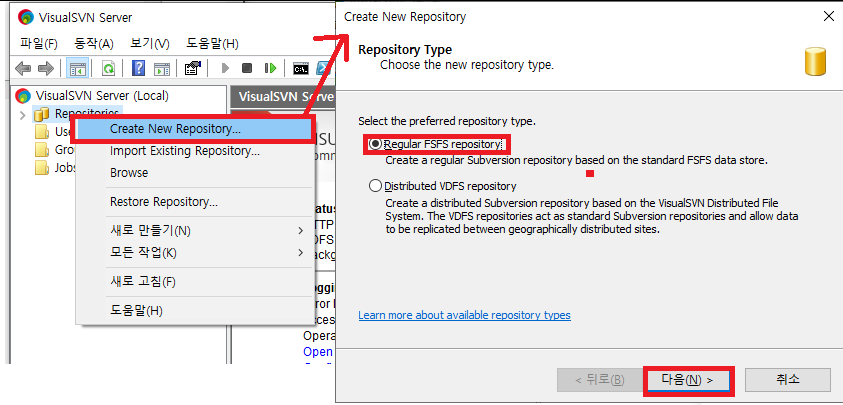 SVN 저장소로 뭔가 테스트 할 일이 있어서 Visual SVN Server를 설치하기로 했다.