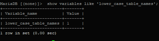 my.cnf 파일의 마지막 라인에 lower_case_table_names=1 를 추가하고 저장한다.