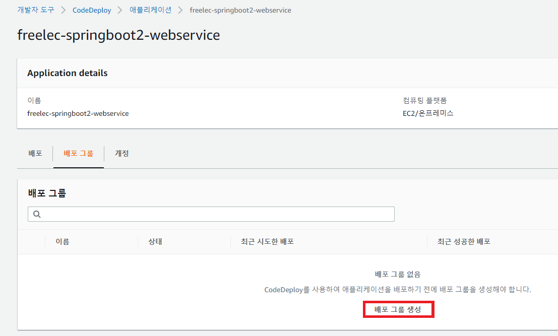 deployment_group: freelec-springboot2-webservice-group # 웹 콘솔에서 등록한 CodeDeploy 배포 그룹