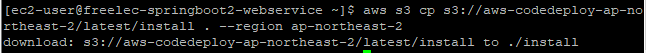 $ aws s3 cp s3://aws-codedeploy-ap-northeast-2/latest/install . --region ap-northeast-2
