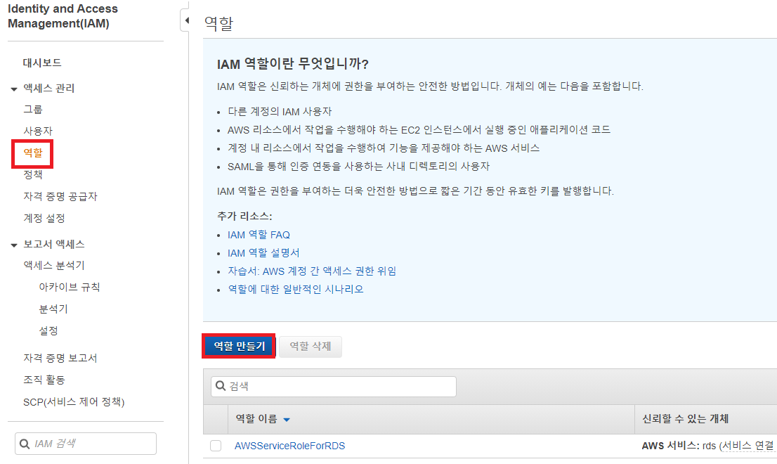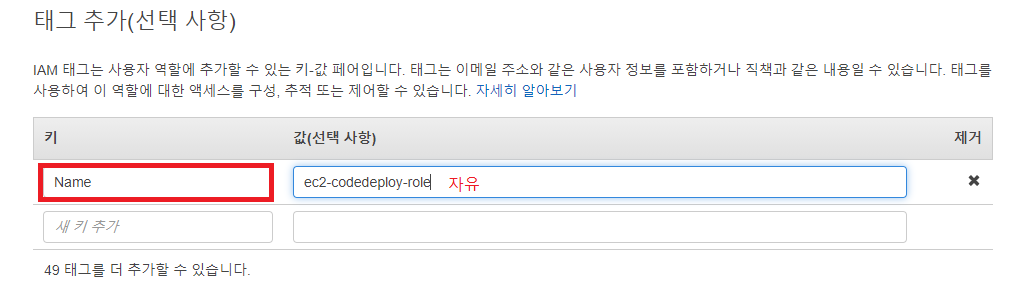 역할 이름이나 Name 태그 등은 위와 같이 원하는대로 지어도 된다.