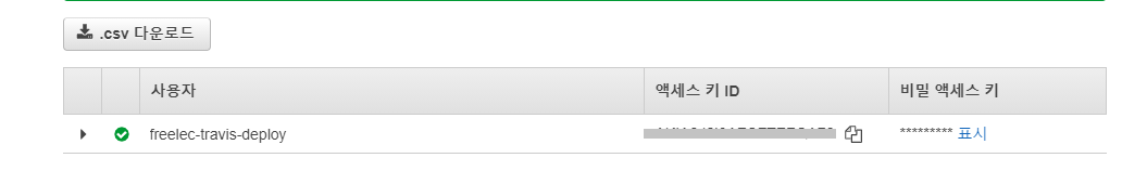 이 등록한 키들은 .travis.yml에서 $AWS_ACCESS_KEY 형식으로 사용할 수 있다.