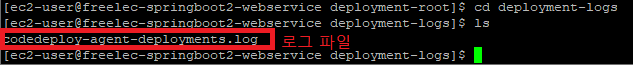 - CodeDeploy 로그 파일: 작성한 echo 내용 및 배포 중 표준 입출력 내용 모두 담겨있음