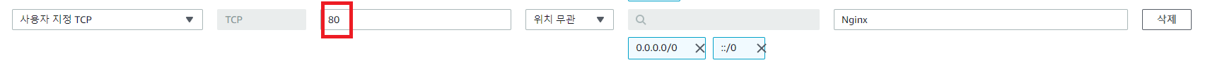Nginx의 포트 번호를 보안 그룹에 추가해야 한다. (기본적으로 80 포트 사용)