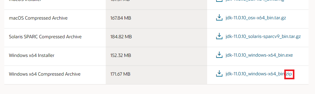 -> Java 11 버전 설치 (www.oracle.com/java/technologies/javase-jdk11-downloads.html)