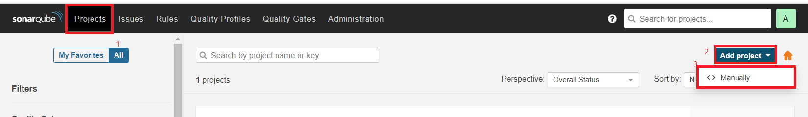 Projects - Add project - Manually
