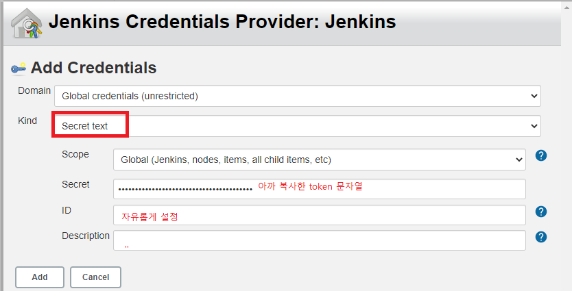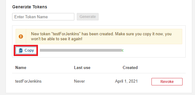 토큰명은 아무거나 상관 없으며, 생성 후에 나오는 문자열은 복사해두는게 좋다.