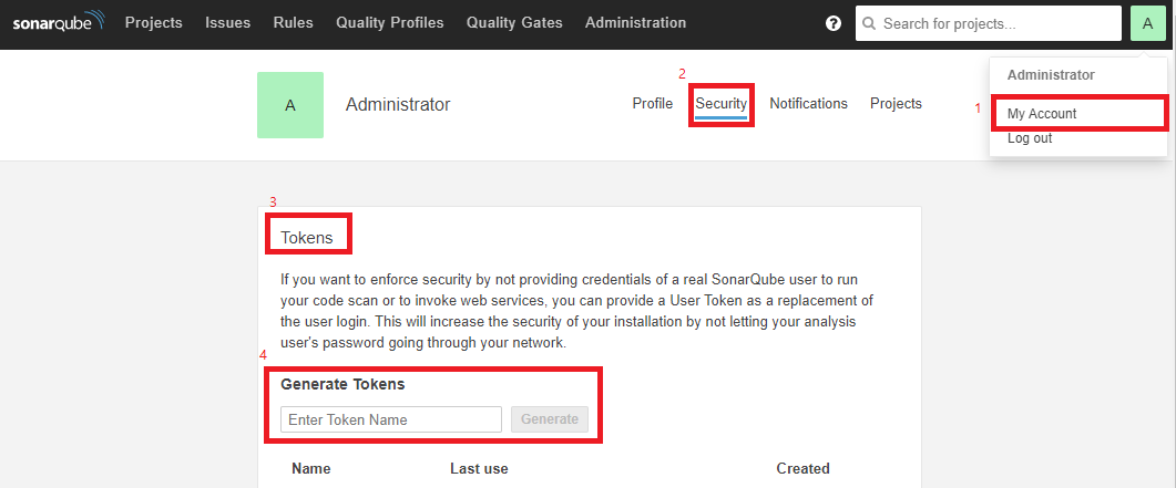 My Account - Security - Tokens - Generate Tokens