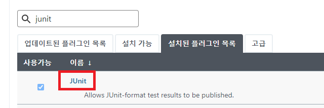 먼저 Jenkins에 접속해 Plugin Manager에서 JUnit Plugin을 설치한다.