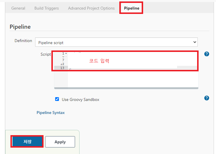 이 부분을 복사해서 pipeline script 안에 붙여넣기 하면 된다.