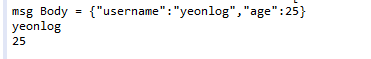 전송 버튼을 누르면 Get URL 쿼리 파라미터 테스트 했을 때처럼 콘솔 창에 조회된 파라미터들을 확인할 수 있다.